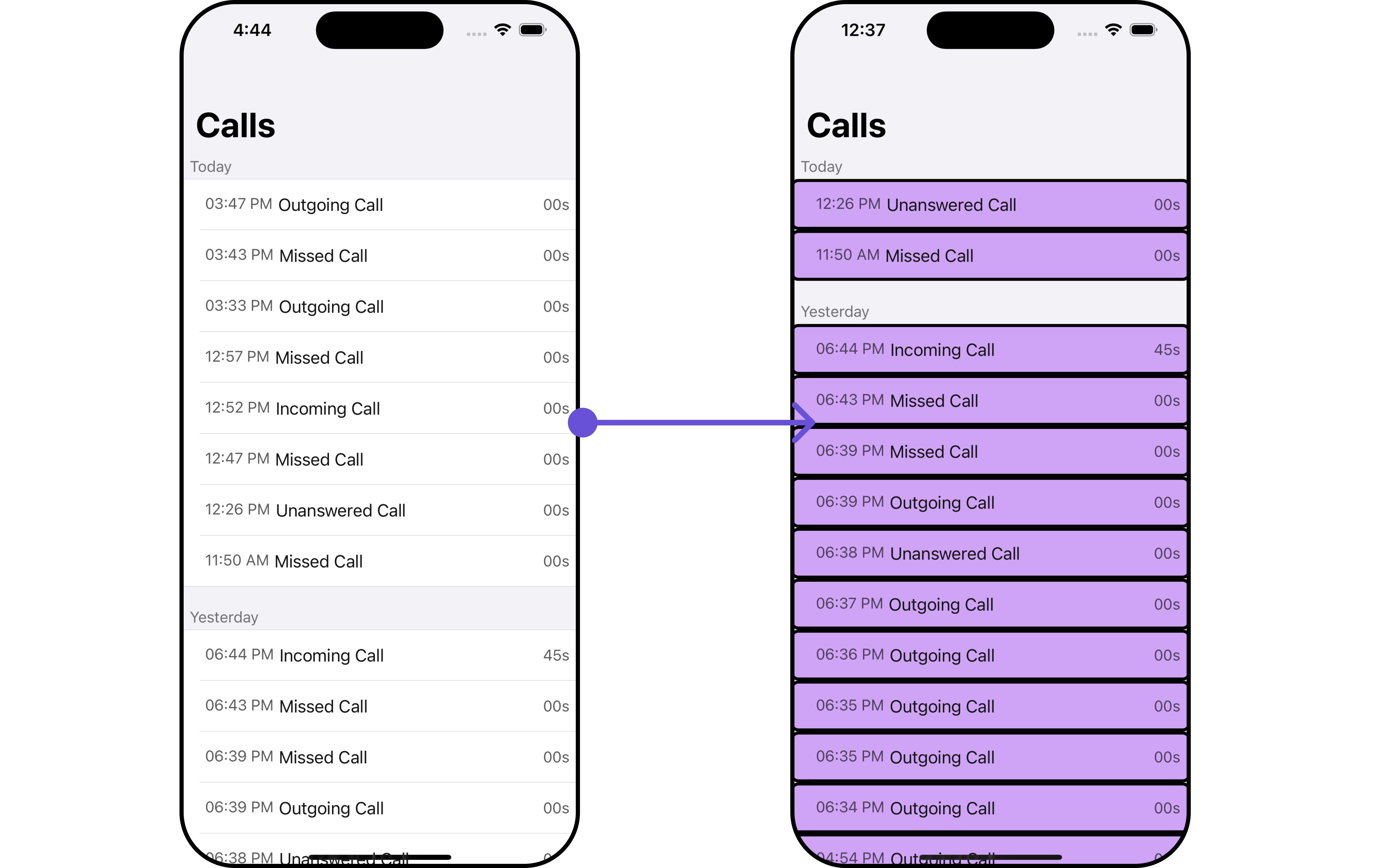 The callRequestBuilder enables you to filter and customize the call list based on available parameters in callRequestBuilder. This feature allows you to create more specific and targeted queries during the call. The following are the parameters available in callRequestBuilder Example In the example below, we are applying a filter based on limit , calltype and call status.- Swift