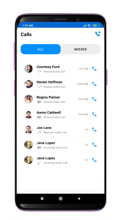 CometChatCalls is custom RecyclerView which will help you to display list of calls.