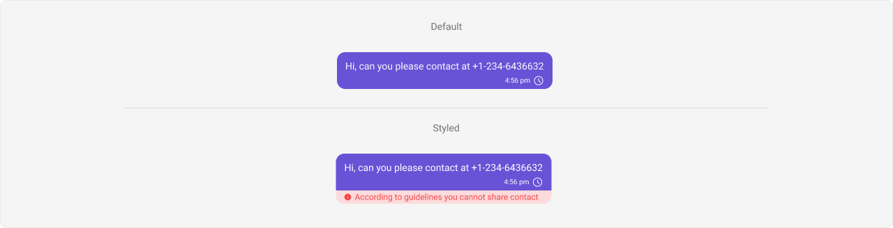 - Bottom view: This view can be used to extend the Message Bubble with additional elements, such as link previews or a ‘load more’ button for long messages. It’s typically placed beneath the Content view.